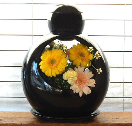 ミニ骨壷 黒みやび桜 2.5寸【同柄骨袋つき】