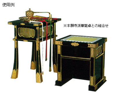 御所型立焼香机 幅4尺[黒塗面金箔押・金具付]
