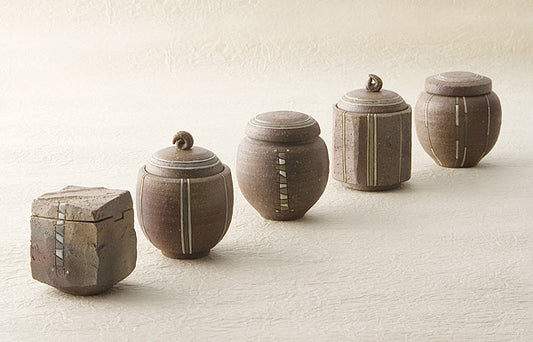 骨壷 葉月窯 灰釉金紋(はいゆうきんもん)(木箱付) 5寸/6寸/7寸