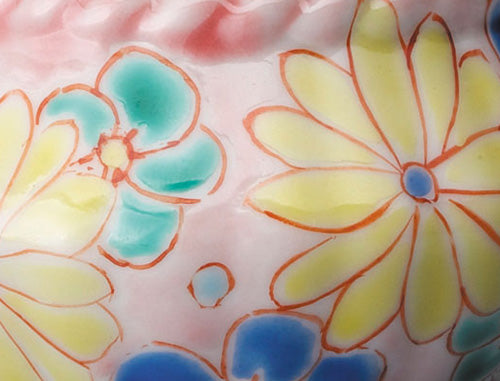 骨壷 九谷焼 十角釉彩桜[ゆうさいさくら]ピンク 7寸 ※桐箱入