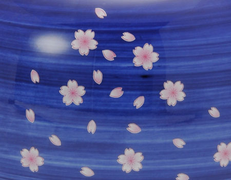 骨壷 有田焼晴陽窯 呉須巻舞桜紋 7寸