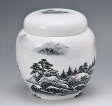 有田焼に水墨画をあしらった格調高い骨壷です。