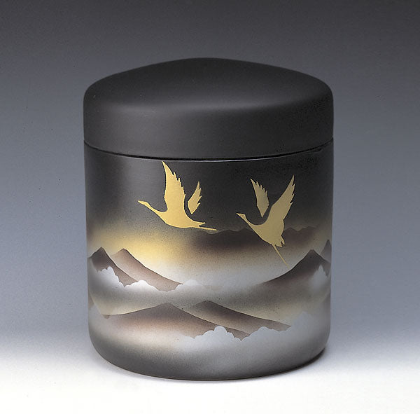 鶴が飛翔している様を描いた雅な骨壷。