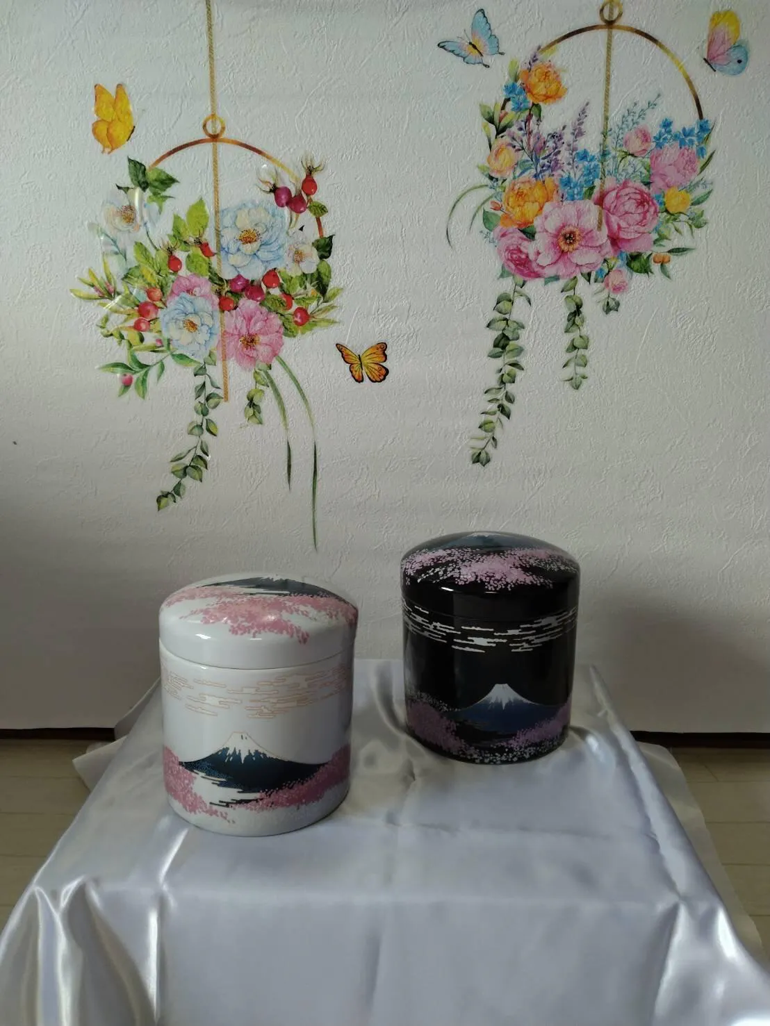 母とお揃いの柄で色違いを選びました。父→黒富士桜、母→白富士桜です。
