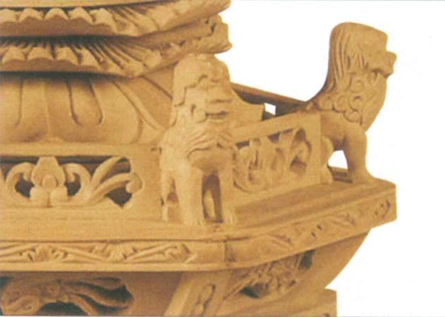麒麟台座は、幻の聖獣が御本尊様の周りを守護するように配された台座です。本柘植の座釈迦です。座弥陀に変更できます。