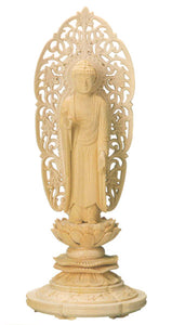 仏像 桧木 上彫木瓜丸台座 【舟立弥陀】 唐草光背 3寸/3.5寸/4寸/4.5寸